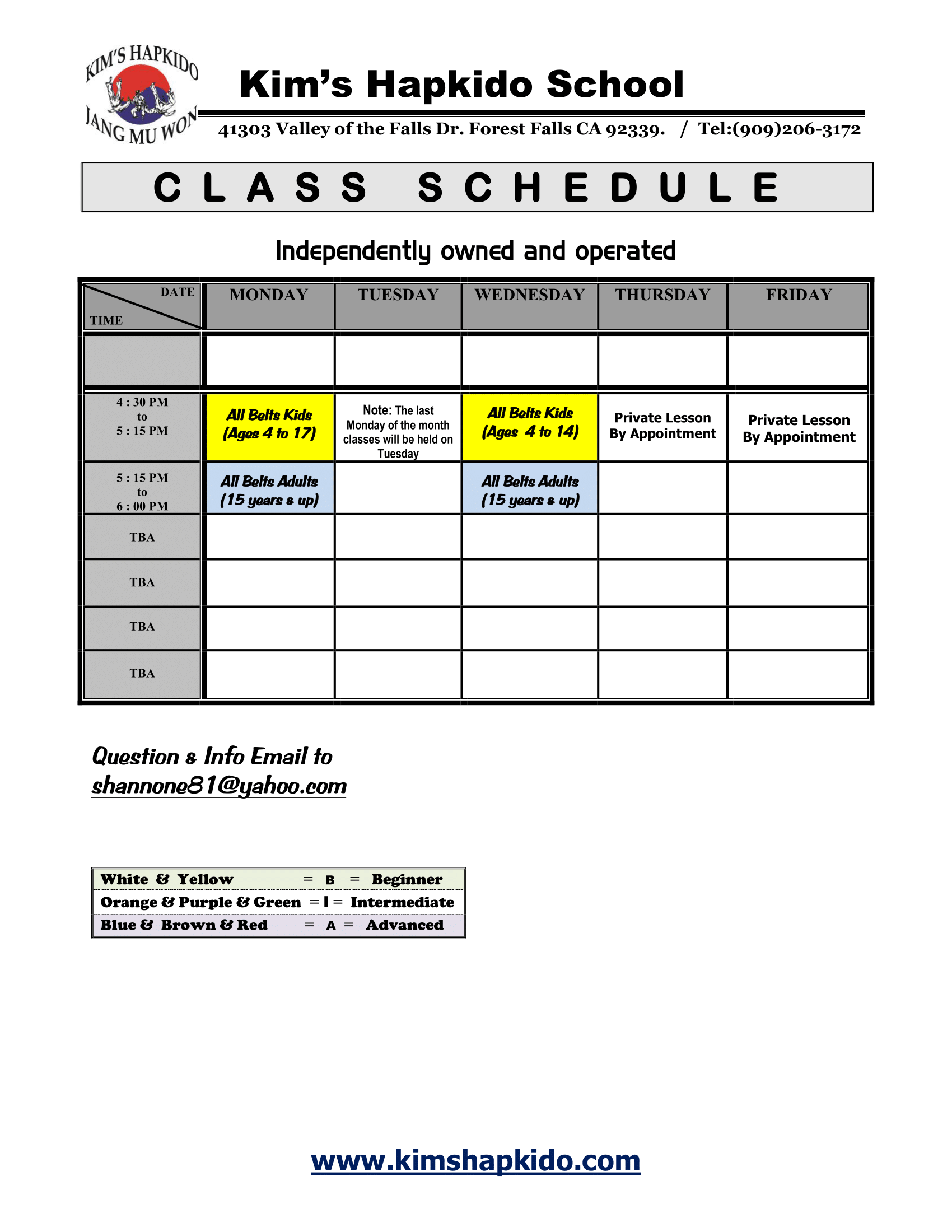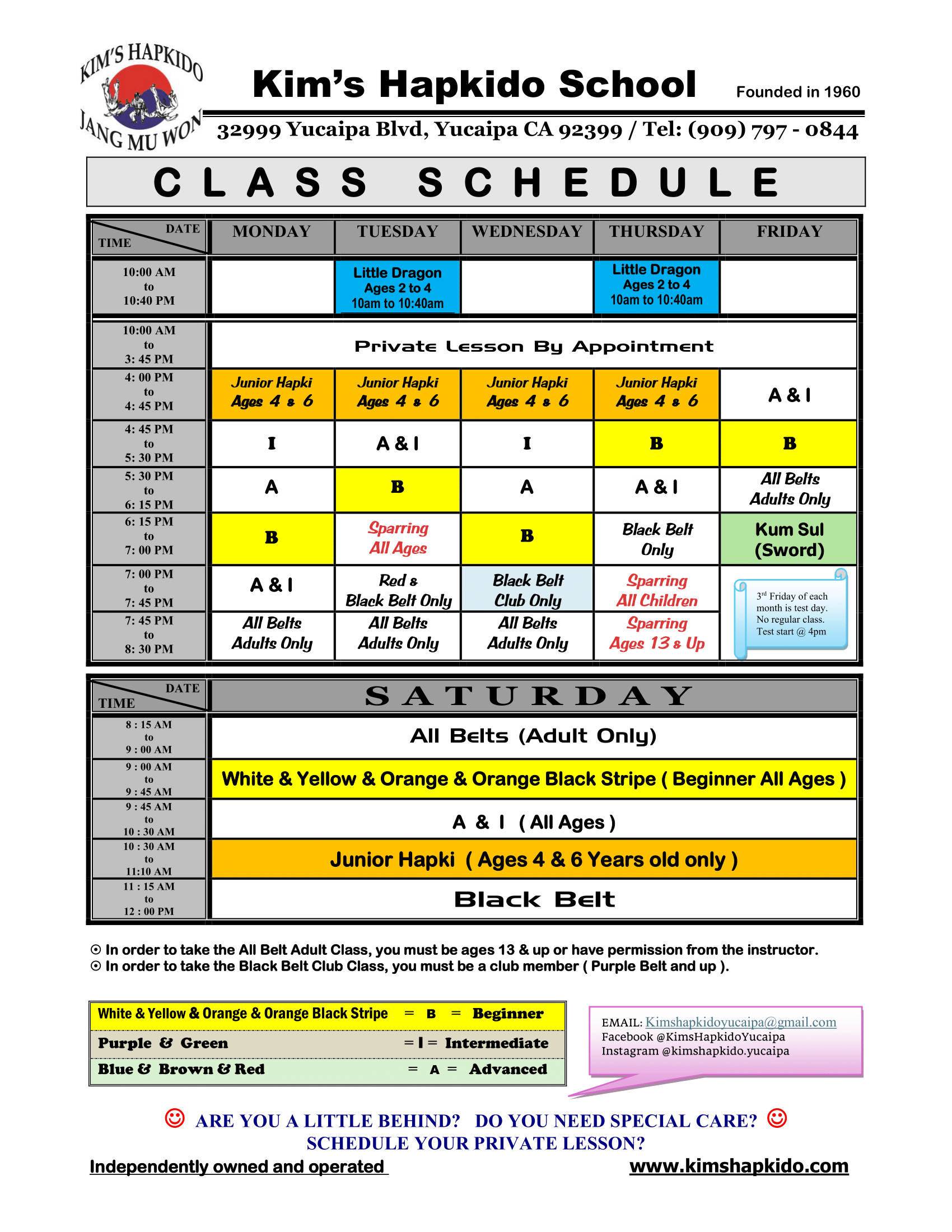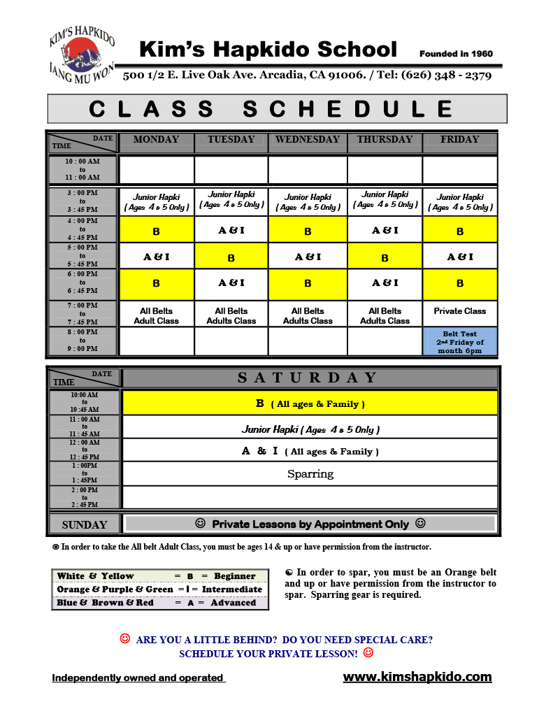 - The box indicating Letter ‘ B ’ or Yellow Highlight is for Beginner Classes.