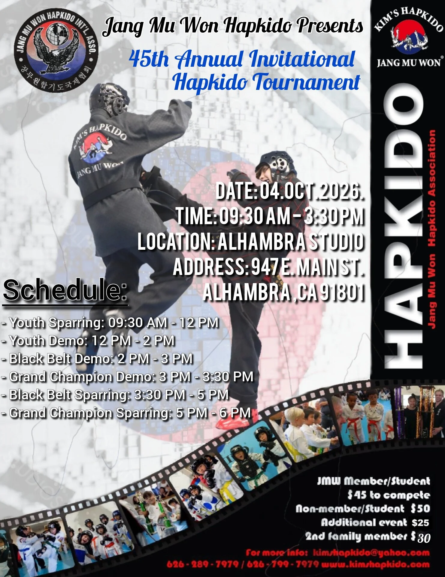 The Jang Mu Won Hapkido Association’s Annual Invitational Tournament is hosted during the fall at one of our branch schools.